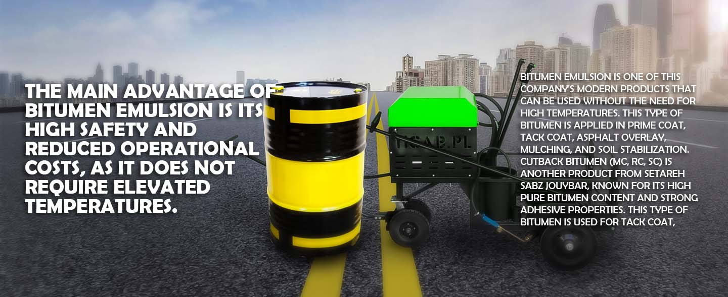 قیر امولسیون یکی از محصولات مدرن این شرکت است که بدون نیاز به حرارت بالا استفاده میشود. این نوع قیر برای پرایمکت، تککت، روکش آسفالت، مالچپاشی و تثبیت خاک کاربرد دارد.