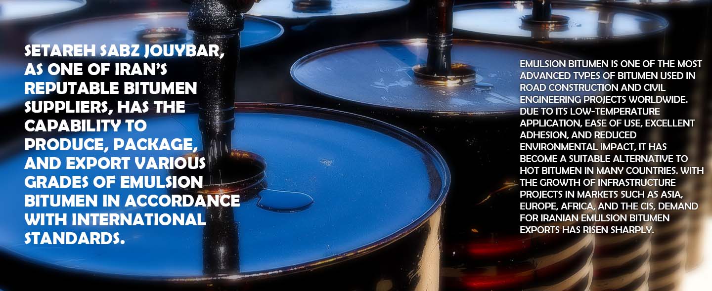 قیر امولسیون یا Emulsion Bitumen یکی از مدرنترین انواع قیر مورد استفاده در پروژههای راهسازی و عمرانی جهان است که به دلیل عدم نیاز به حرارت بالا، سهولت مصرف، چسبندگی عالی و کاهش آلایندگی، جایگزین مناسب قیر داغ در بسیاری از کشورها شده است. با توجه به رشد پروژههای زیرساختی در بازارهایی مانند آسیا، اروپا، آفریقا و CIS، تقاضا برای صادرات قیر امولسیون ایران بهشدت افزایش یافته است.